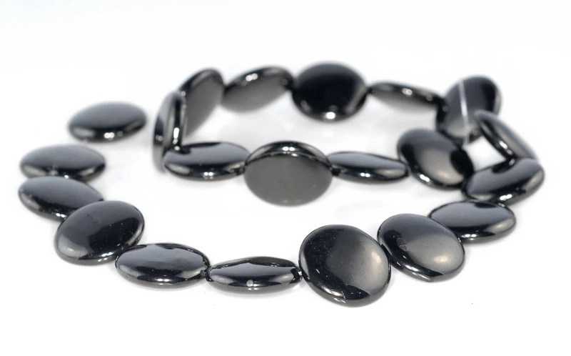 17-18MM BLACK JET GEMSTONE ORGANIC FLAT ROUND CIRCLE LOOSE BEADS 15.5inch