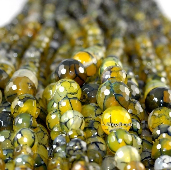 PIEDRA PRECIOSA CIPRÉS ÁGATA AMARILLO AHUMADO GRADADO FACETA REDONDA 14MM-6MM CUENTAS 17 pulgadas-