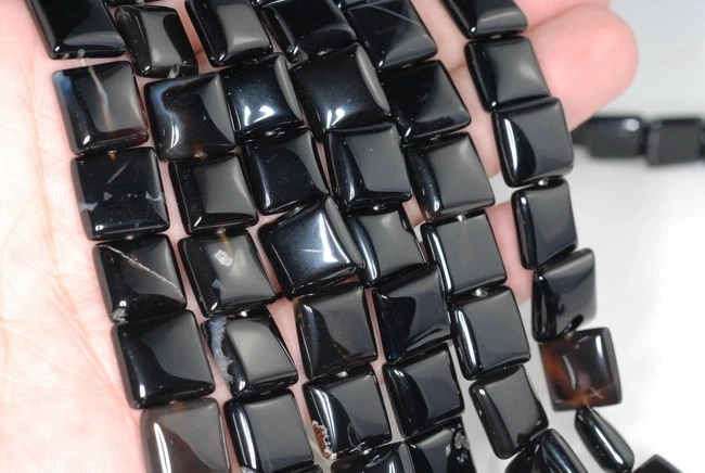 CUENTAS SUELTAS CUADRADAS PIEDRAS PRECIOSAS ÁGATA NEGRA 12 MM 7,5"-