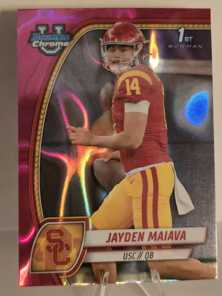 2024 Bowman University cromo - Jayden Maiava #195 refractor de lava rosa (RC)-