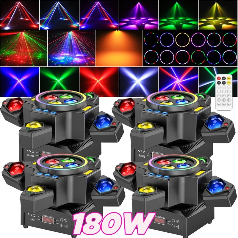 4 piezas 4 brazos LED Laser Beam Moving Head DMX RGBW haz luz de escenario DJ luz de fiesta-