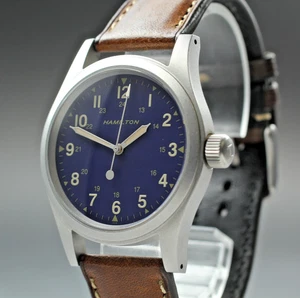 [N COMO NUEVO] HAMILTON Khaki Field H694190 esfera azul 38 mm reloj de cuerda manual para hombre-