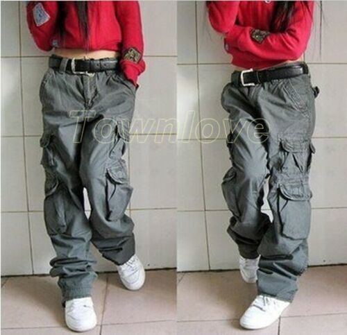 Mujeres Cargo Outdoor Hiphop Dance Pantalones Sueltos Pantalones Ejército Militar Bolsillo Retro-