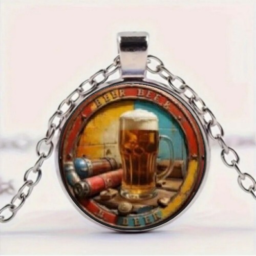Collar colgante redondo estilo vintage cigarro cerveza joyería regalo-