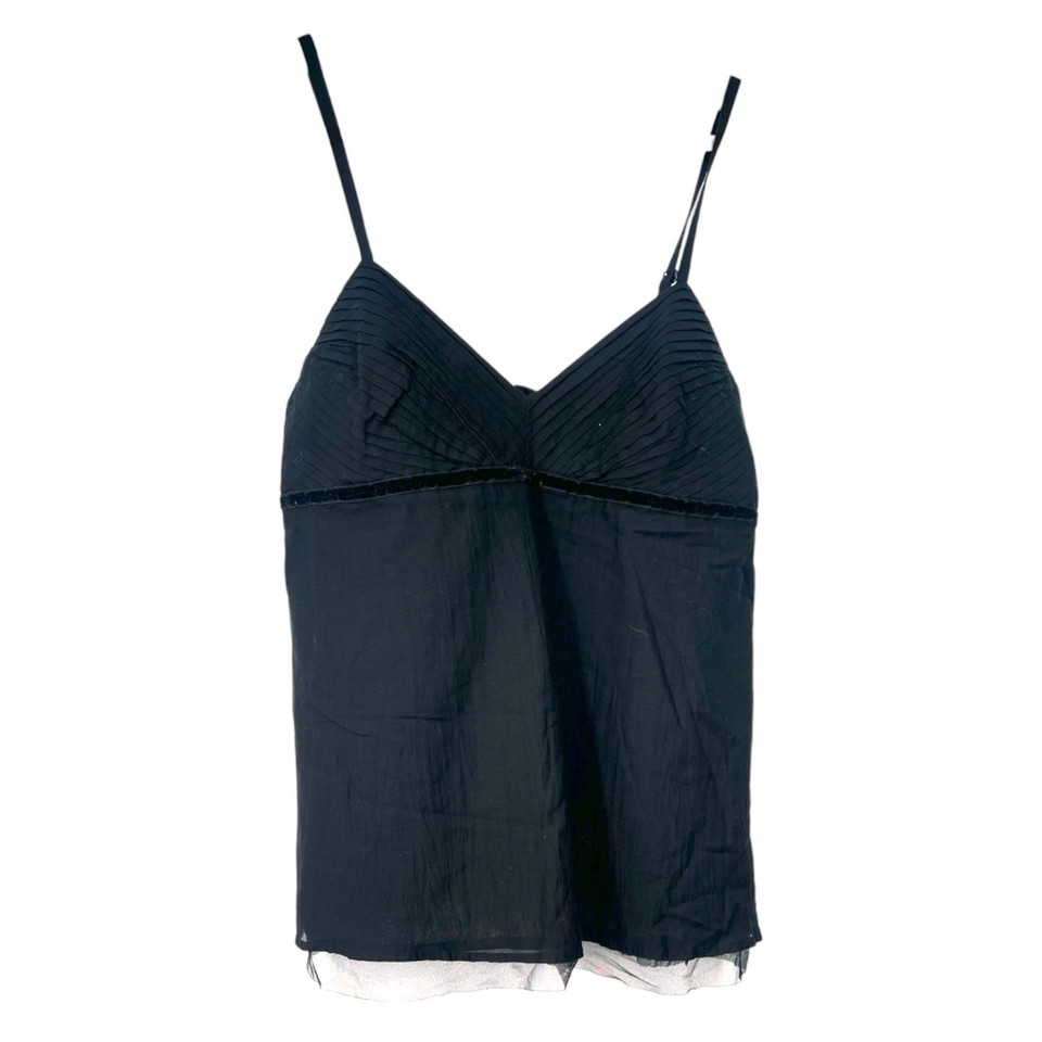 NUEVO CON ETIQUETAS GAP | S | Camiseta sin mangas cami plisada cuello en V profundo acento de tul transparente sin mangas-