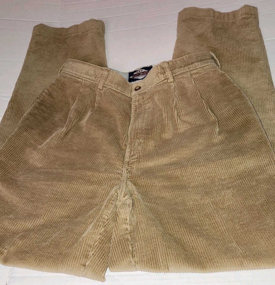 Pantalones de pana plisados tallados con volantes de colección para hombre 33 X 30 beige tostado Y2k Preppy Academia-