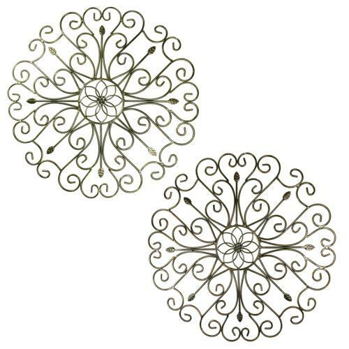 Juego de decoración de pared de metal de 24"/2 medallón enrollado hierro decoración del hogar acabado antiguo -