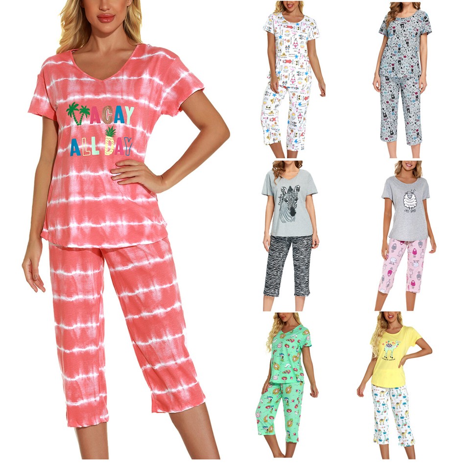 Mujeres Lindo Conjunto de Pijama Algodón Suave Manga Corta Cómodo Pjs Pantalón 2 Piezas Prendas para Dormir-