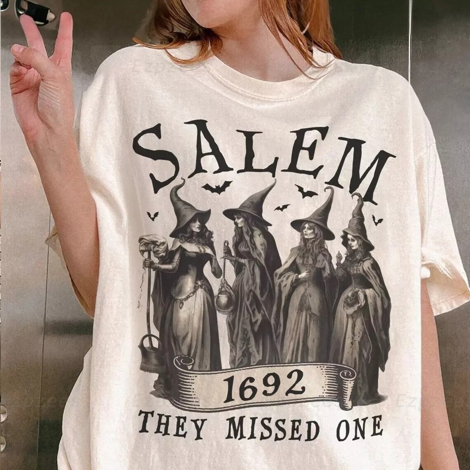 Halloween Salem Bruja Camiseta Blanca, 1692 Se Perdieron Una Camisa, S-5XL-