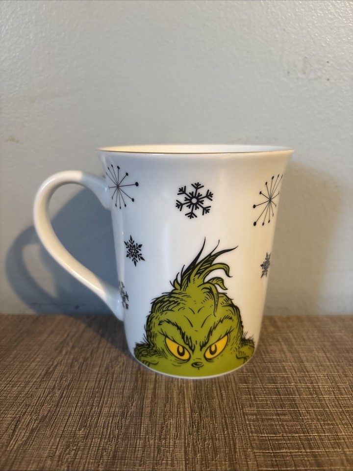 Taza Dr Seuss Grinch Navidad Vacaciones Copo de Nieve Oro Taza de Café NUEVA-