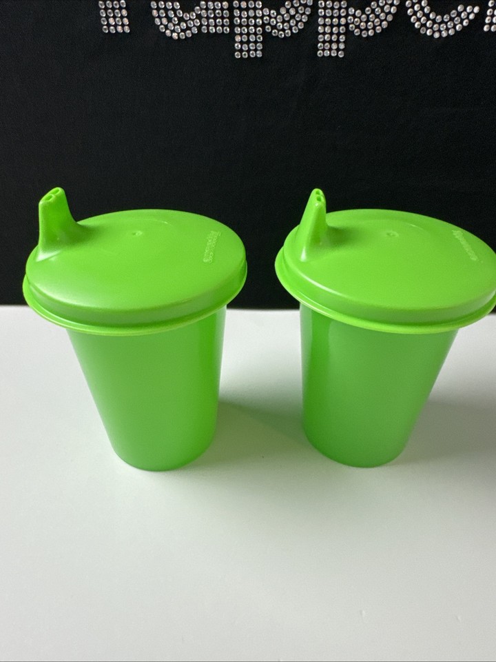 Juego de 2 vasos de campana Tupperware para niños con sellos de cúpula verde