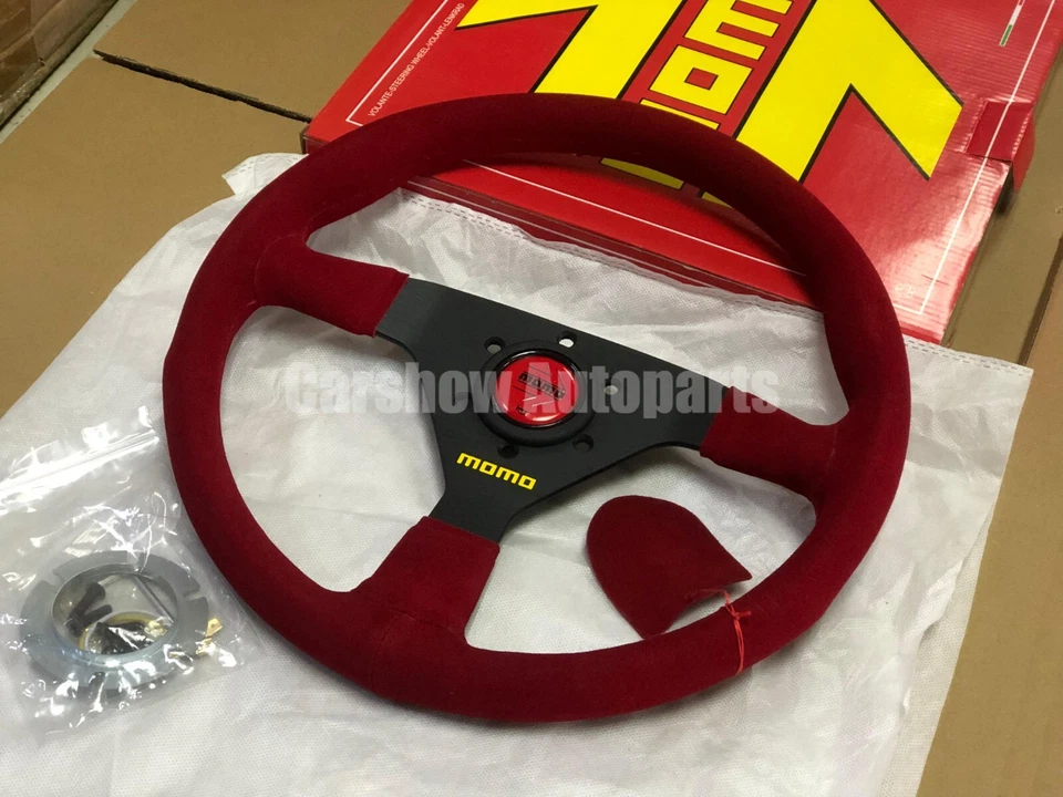 Volante deportivo MOMO MC clásico 350 mm 14' cuero gamuza rojo radios gruesos-