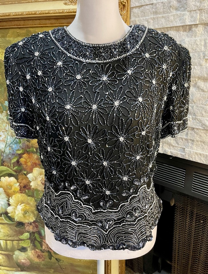 Top PAPELL Boutique Seda Floral Cuentas Lentejuelas Pequeño Grande-