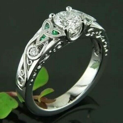 1.45ct Round Moissanite Celtic Knot Engagement Wedding Ring 925 Sterling Silver
