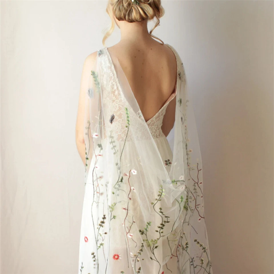 Flores Salvajes Floral Encaje Secreto Jardín Novia Boda Capa Drapeado Velos de Hombro-