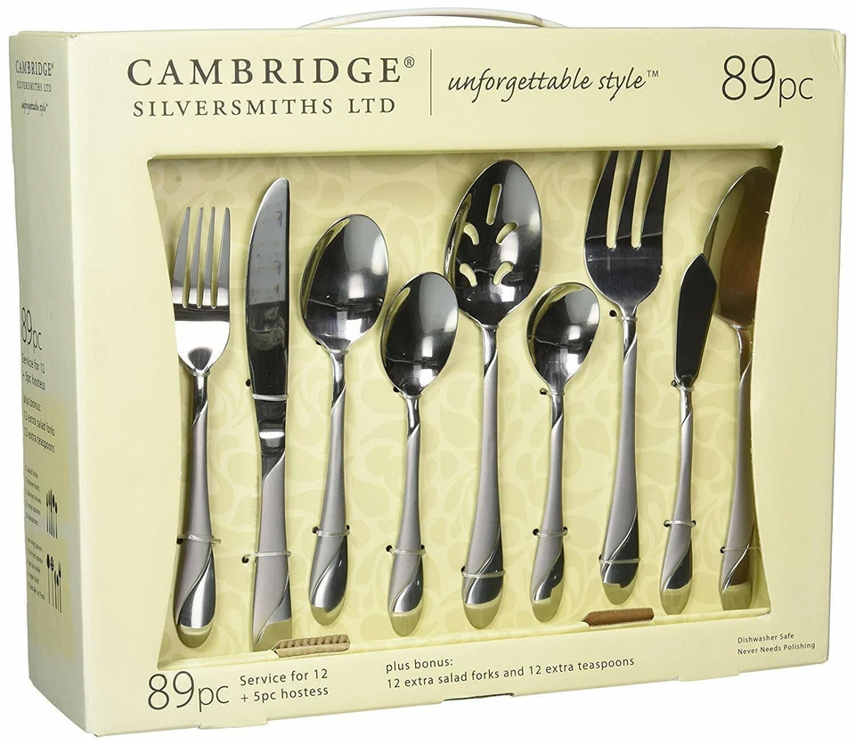 Servicio de cubiertos para 12 cubiertos de acero inoxidable con juego de anfitriona 89 piezas-