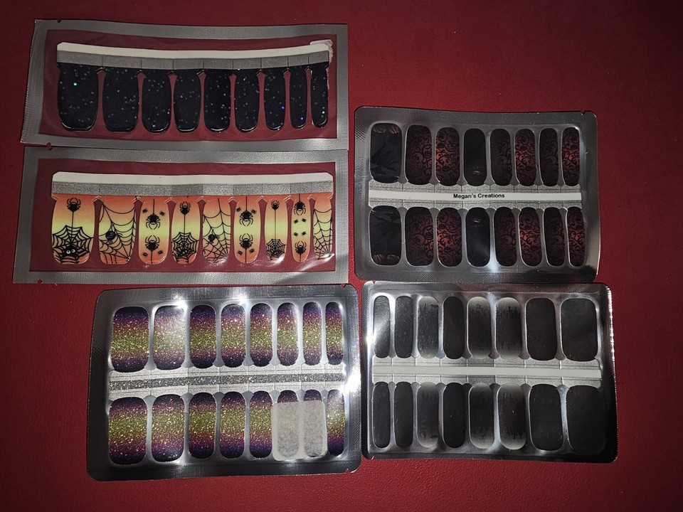 Lote de 5 nuevas envolturas de esmalte de uñas y dedos mixtas HALLOWEEN Jackolantern holográficas