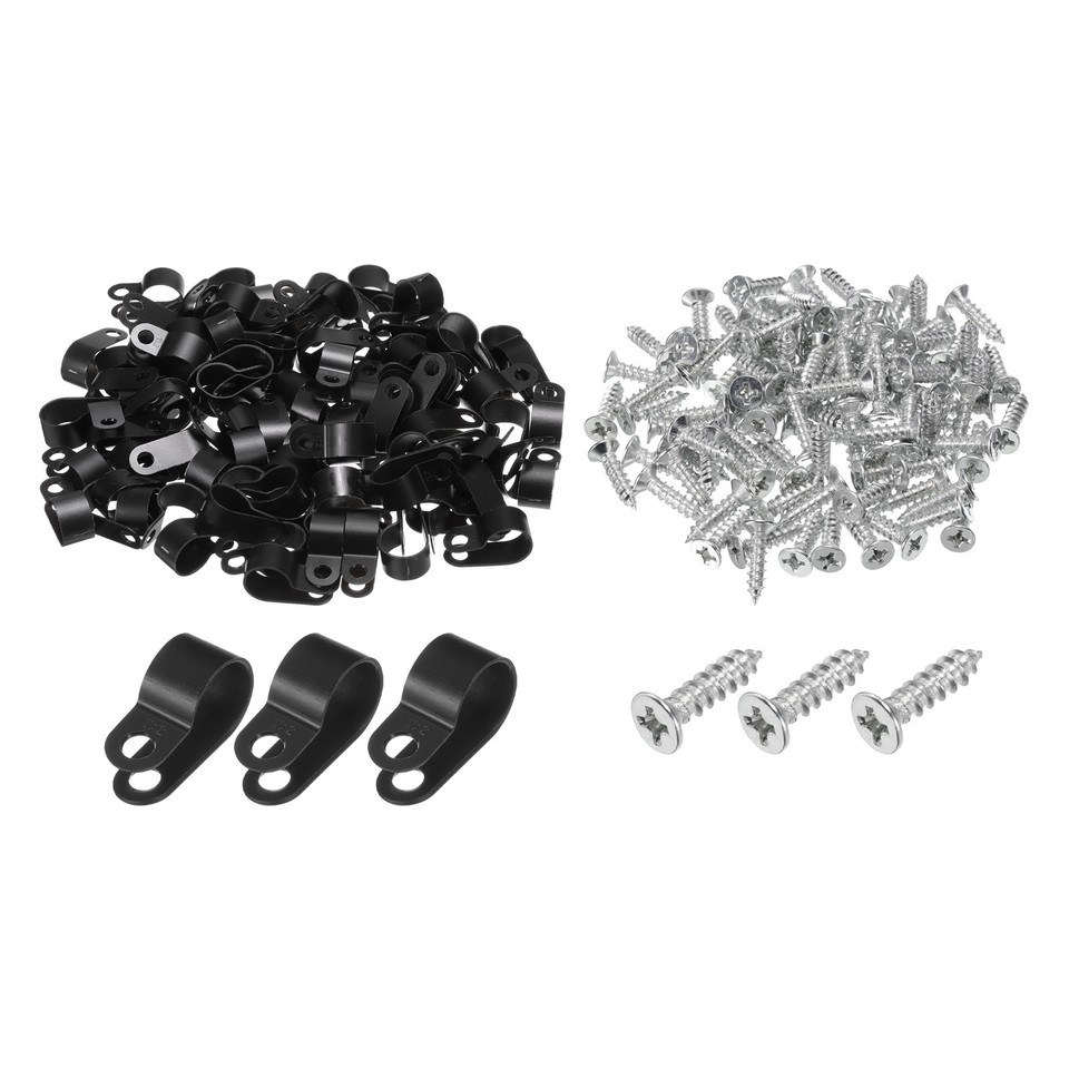 R-Type Cable Clip Wire Clamp, 13.2mm 0.52 Inch Nylon Clips Black 200Pcs