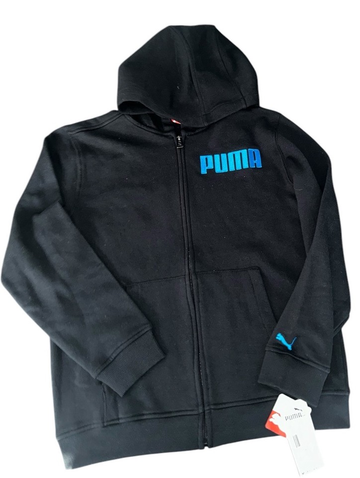 Sudadera Puma Niños Cremallera Completa Sudadera con Capucha Negra Talla Mediana NW-