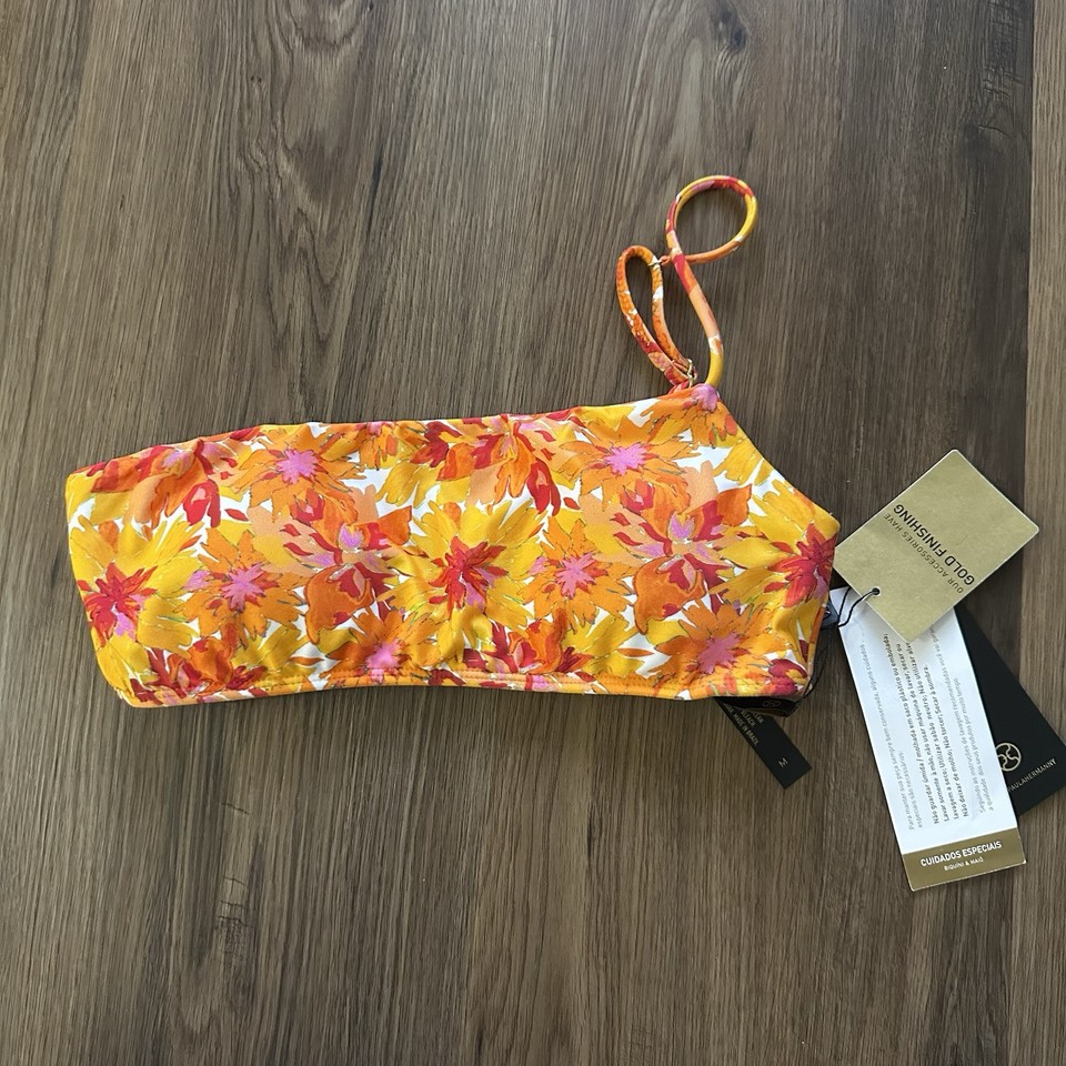NUEVO Traje de baño Vix Lowana Mostaza Ana Bandeau Top Mujer Mediano Dorado Floral-