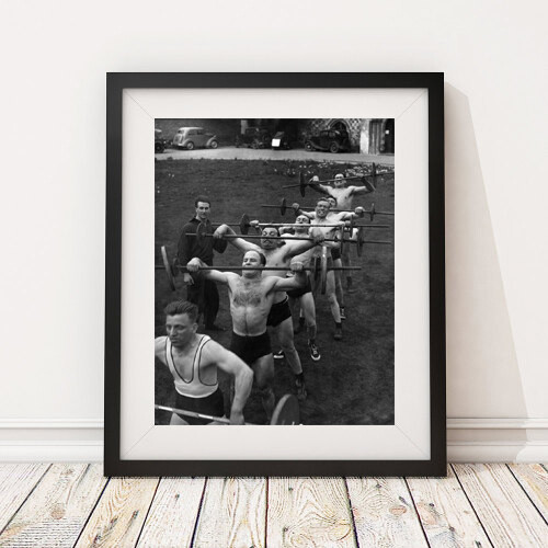 Foto de colección - Hombres de fitness de 1930 levantando pesas con barras - Arte fotográfico-