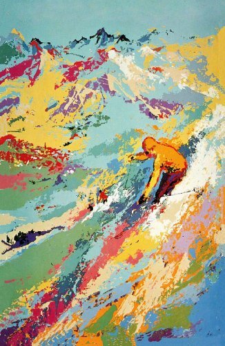 Postal VINTAGE de publicación LeRoy Neiman Knoedler - esquí alpino-