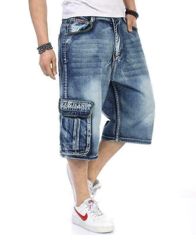 Pantalones cortos de mezclilla de bolsillo de carga para hombre calce suelto hip hop grande talla 30-46-