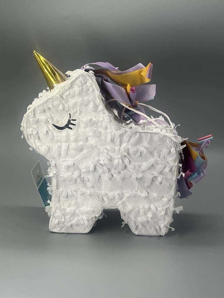 Mini piñata blanca unicornio fiesta cumpleaños 6 x 6 x 3 nueva con etiquetas