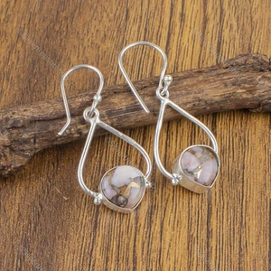 - 100% Genuine Natural Pink Opal Copper Earrings