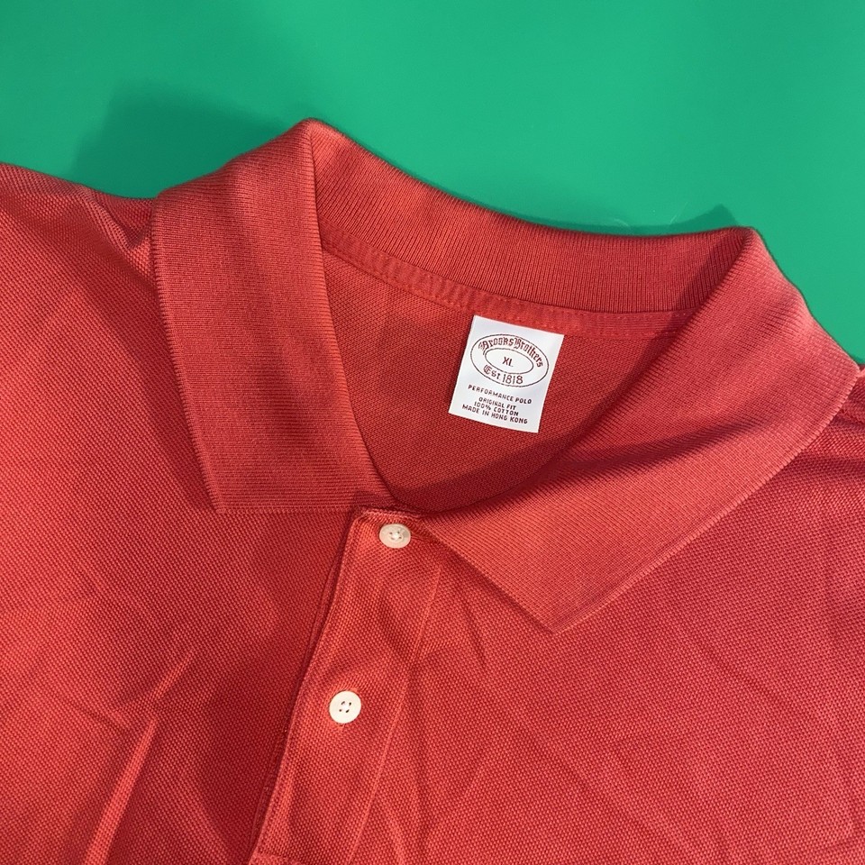 Camisa polo roja manga corta calce original Brooks Brothers 1818 para hombre (XL)-