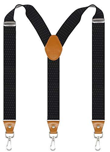 Tirantes para Hombres con 3 Ganchos Giratorios Lazos para Cinturón 1.4 Pulgadas de Ancho Pesado Punto Negro-