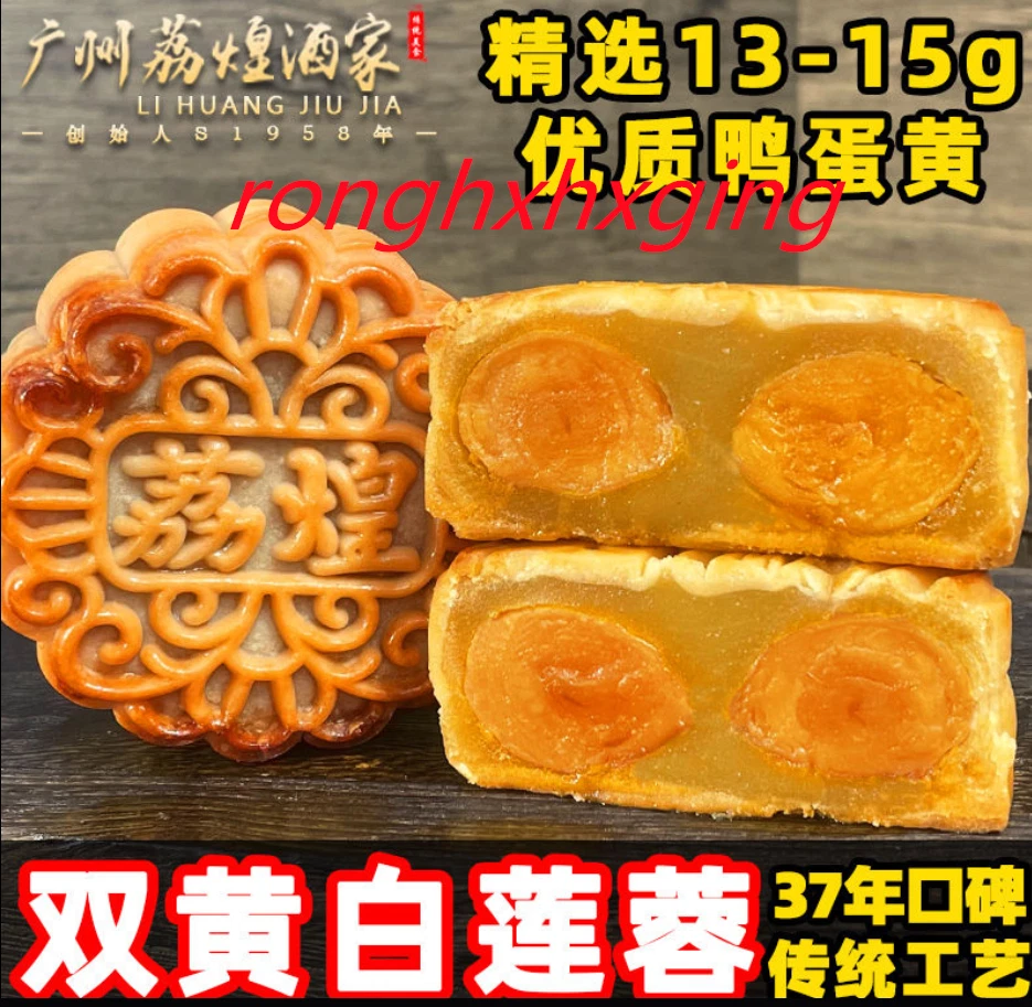 Pasta de semillas de loto blanco de doble yema tradicional pastel de luna 广州荔煌酒家 双黄白莲蓉广式中秋月饼-
