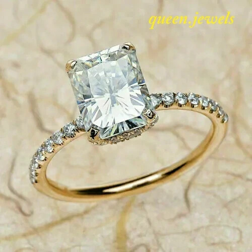 Alianza de oro amarillo de 14 quilates con halo oculto de diamantes de corte radiante de 3 quilates FN-