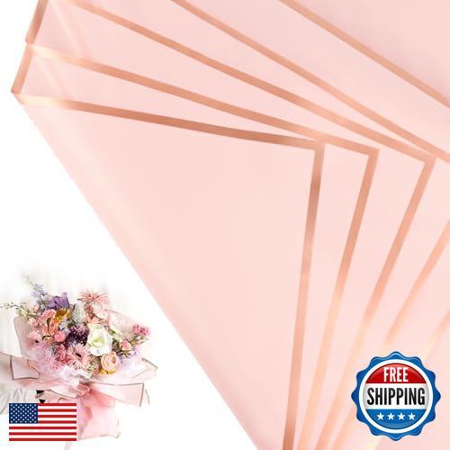 30 hojas de papel de envolver ramo de flores borde oro rosa, suministros de floristería agua-