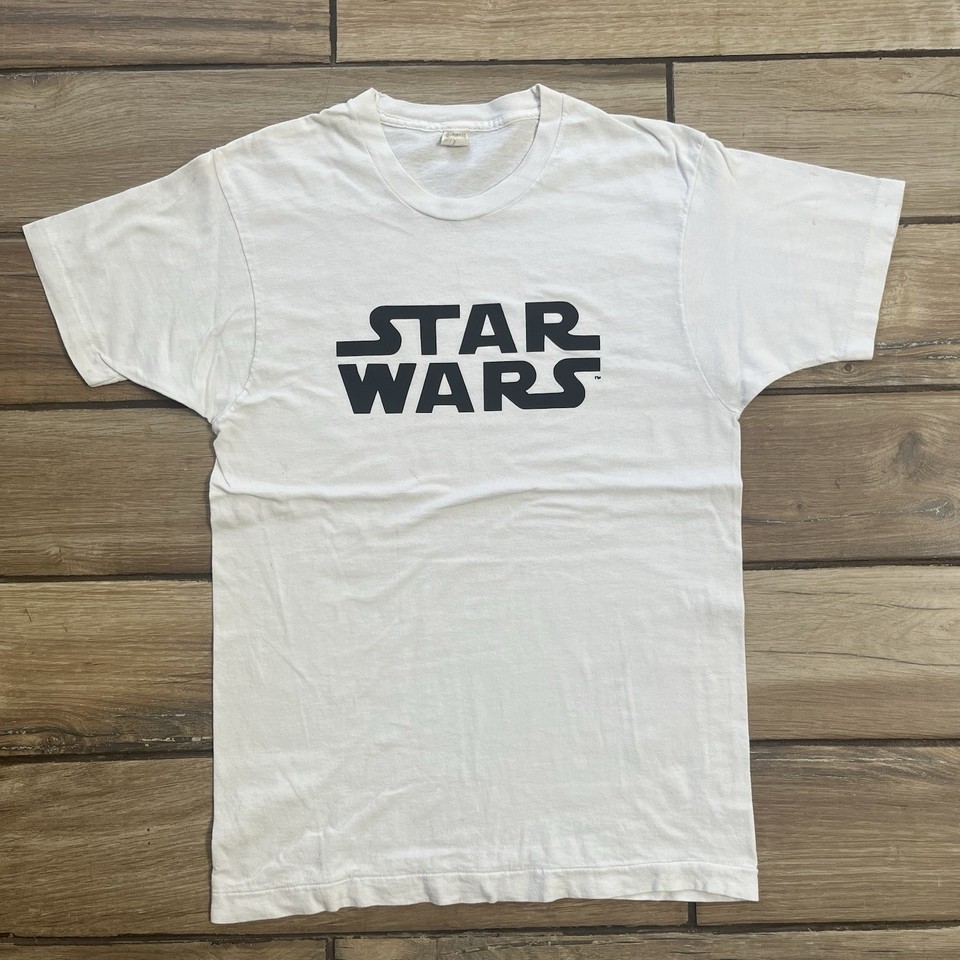 Camiseta vintage de la película Star Wars deletreada para hombre blanca y negra talla L-