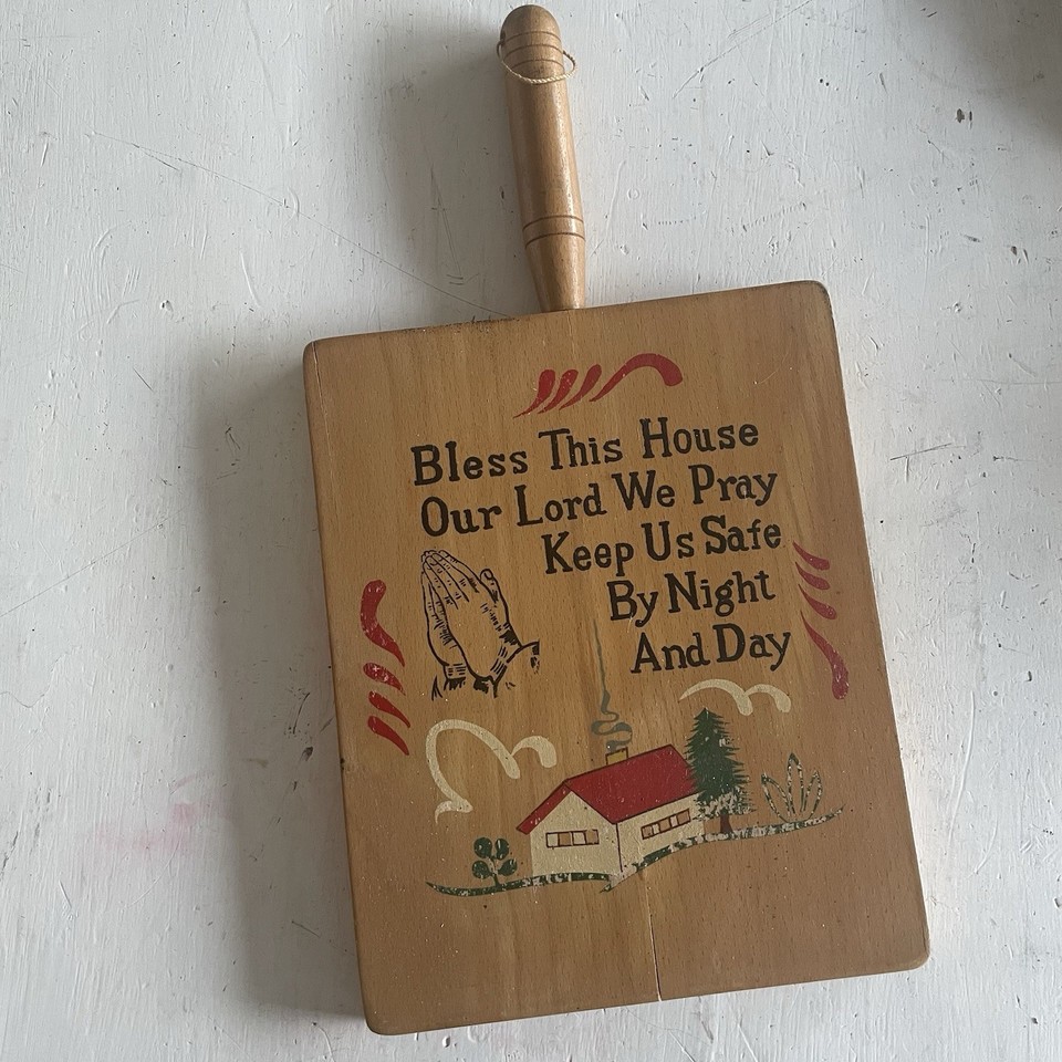 Charming Vintage Wooden Cutting Board Prayer Folk Art Kitchen Decor Religious