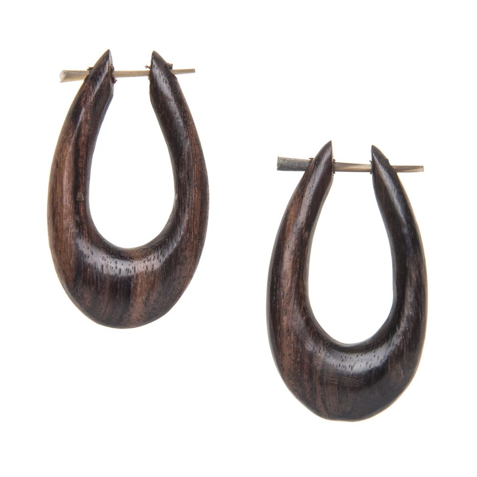 81stgeneration Wood Hoop Earrings w/ Stick Posts Oval Teardrop Tribal Wooden