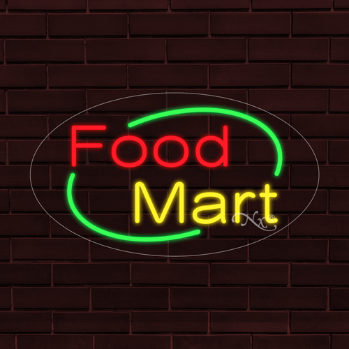 NUEVO LETRERO INTERIOR VENTANA/PARED LED FLEX VENTANA/PARED LED OVALADO "FOOD MART" con borde ovalado 28x16 pulgadas 34518-