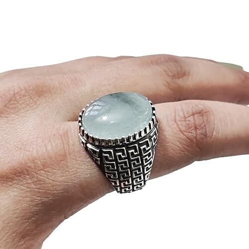 ANILLO PARA HOMBRE DE PIEDRA PRECIOSA AGUAMARINA NATURAL 925 PLATA ESTERLINA DISEÑO ÁRABE PESADO-