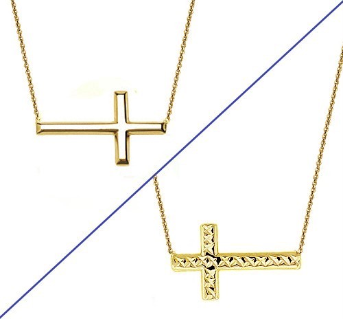 Collar Cruz Oro Amarillo 14K Reversible Lateral Cruz Fe Cadena Ajustable-