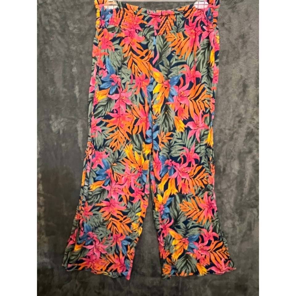Shade & Shore tropical print high waist wide leg flowy pants women’s sz M beach