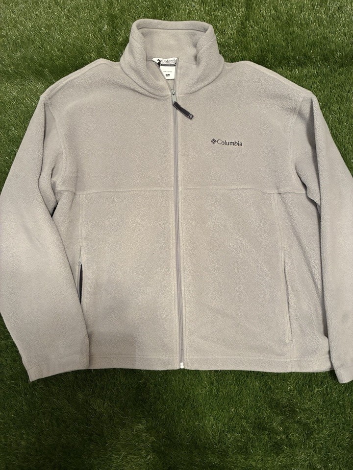 Chaqueta de hombre Columbia polar cremallera completa grandes bolsillos delanteros beige tostado talla XL DE COLECCIÓN-