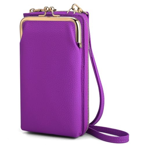 Bolso Bandolera Pequeño para Teléfono para Mujer Teléfono Celular Cartera Billetera Bloqueo de Beso Púrpura-
