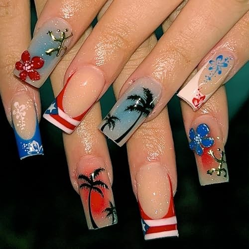 24 Piezas 4 de Julio Prensado en Uñas Medianas Cuadradas Falsas Día de la Independencia Uñas-20-