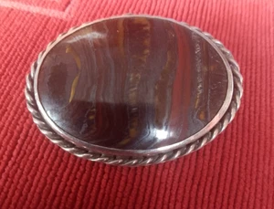 Precioso broche vintage sin marca de metal blanco esterlina cuerda ovalada broche de declaración-