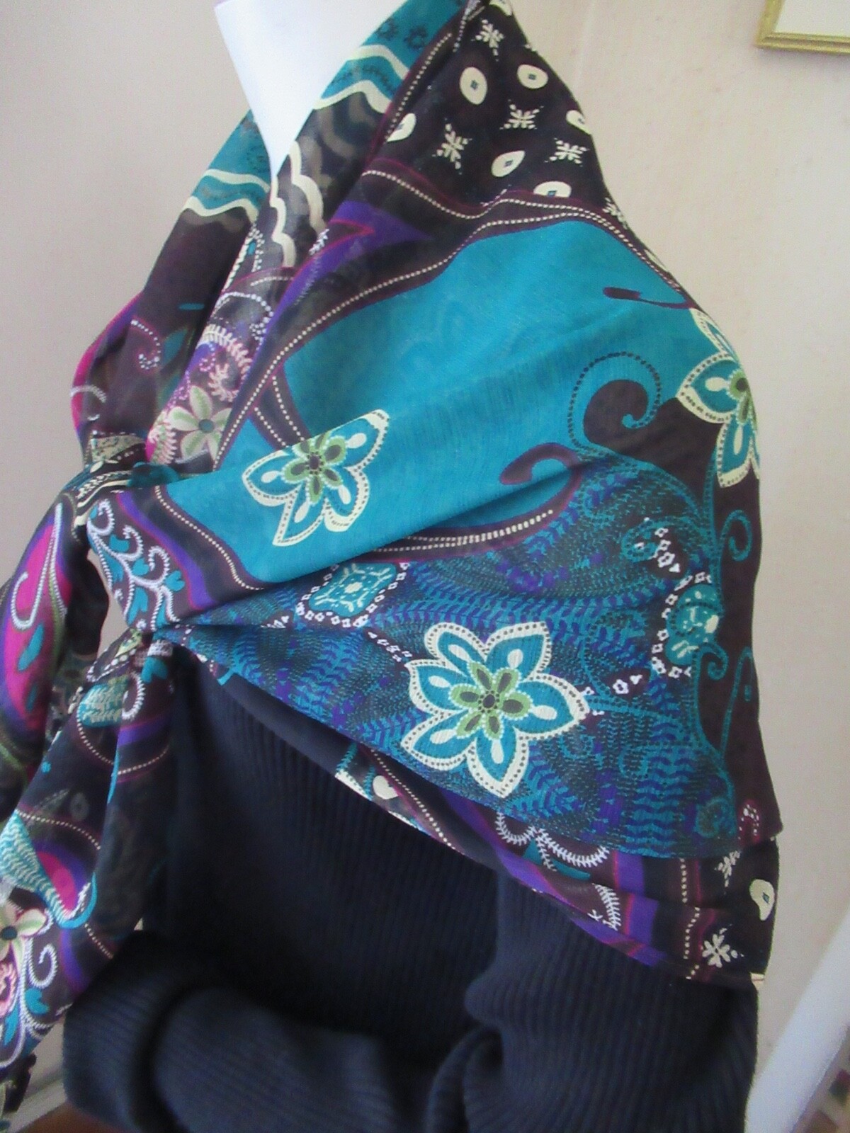 Hermosa bufanda cuadrada de 42" de Chico's nueva con etiquetas/poliéster/floral/varios colores-