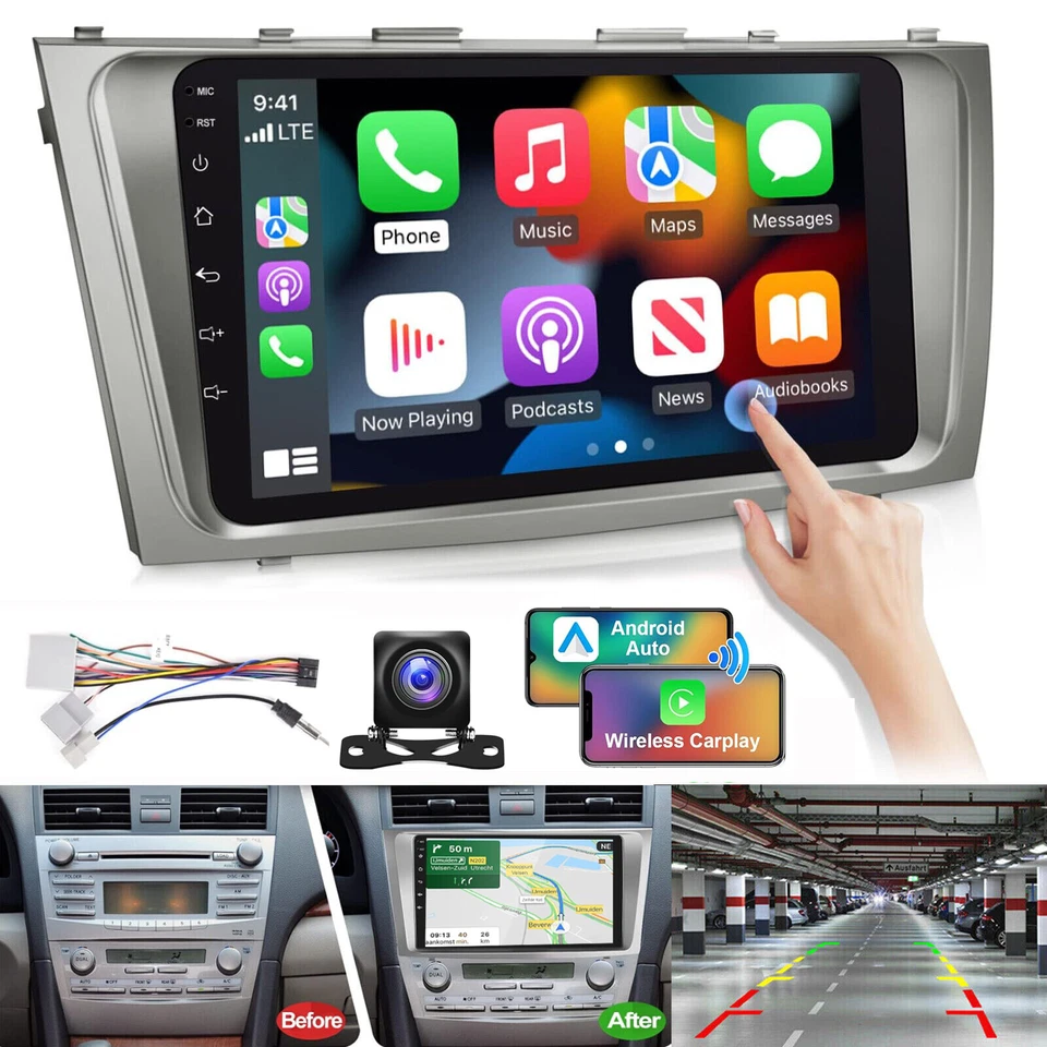 Radio Coche 9" Android 13 GPS Wifi 2+32GB Para Toyota Camry 2006-2011 Carplay + Cámara-