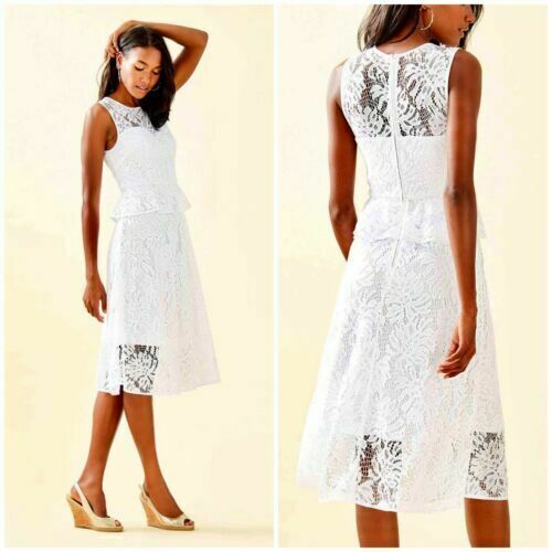 Vestido de encaje Lilly Pulitzer para mujer talla 0 Nolea blanco forrado sin mangas nuevo con etiquetas $228 -