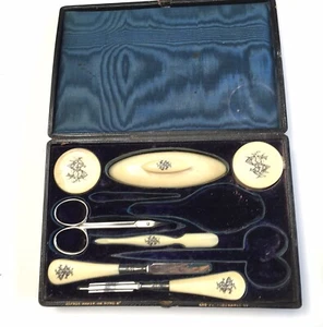Juego de manicura de uñas de celuloide Art Deco vintage en caja original-