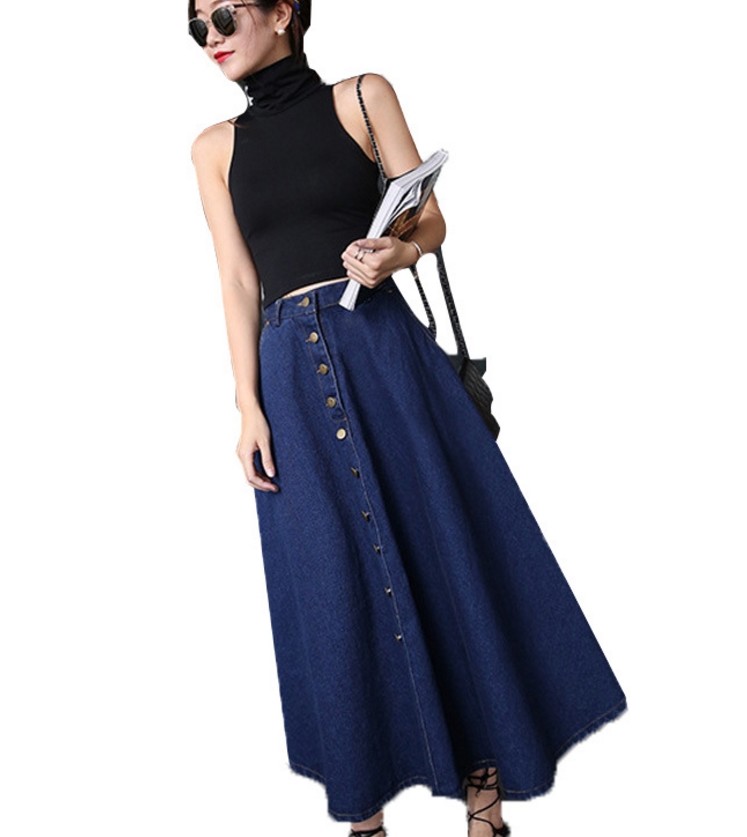 Fashion Women's Denim A-line High Waist Long Midi Flare Party Skater Slim Skirt